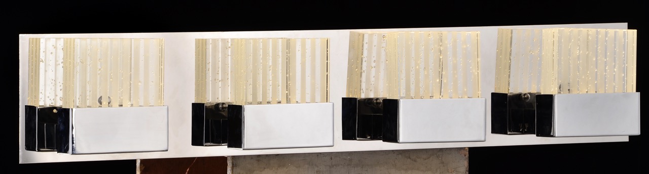 Enhance your vanity or bathroom with this Crystal Glass 4-Light Vanity Wall Lamp, featuring a sleek chrome finishand elegant K9 crystal accents. Designed to provide bright and sophisticated illumination, this fixture is perfect for modern and classic interiors alike.