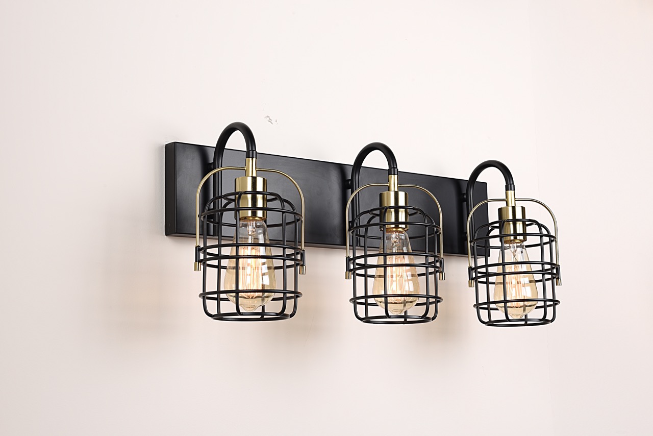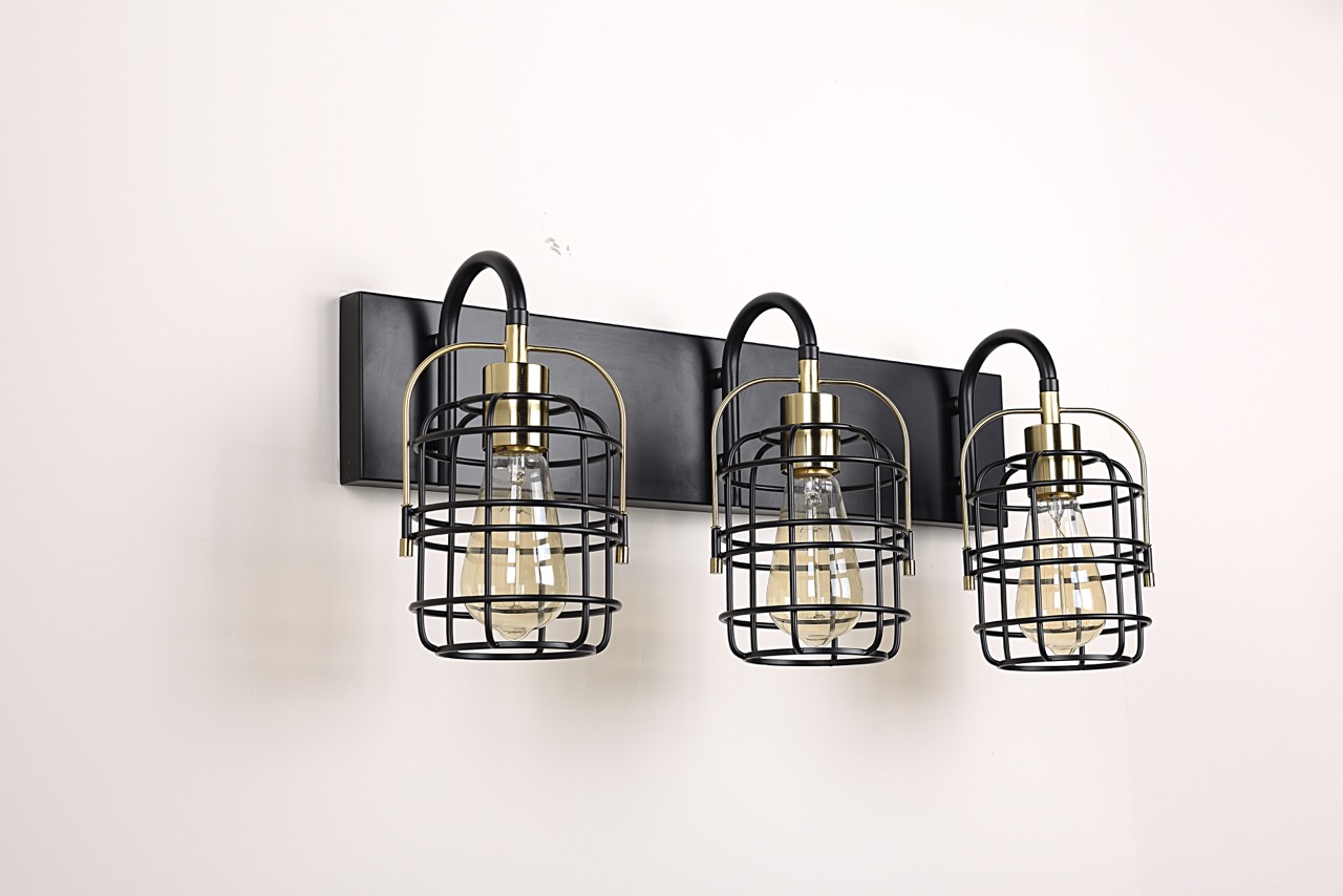 Enhance your bathroom or vanity area with this elegant 3-Light Vanity Wall Lamp. Featuring a sophisticated black and gold finish, this fixture combines modern style with timeless appeal. The iron frame and glass shades provide a sleek yet durable design, making it a perfect addition to any contemporary or classic space.